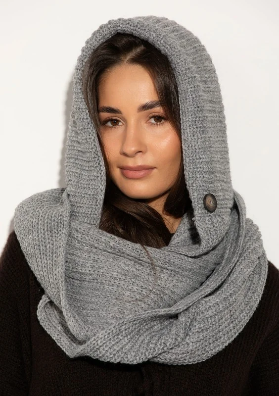 Hood Wrap - Dzianinowy kaptur z otulającym szalem Szary Melanż
