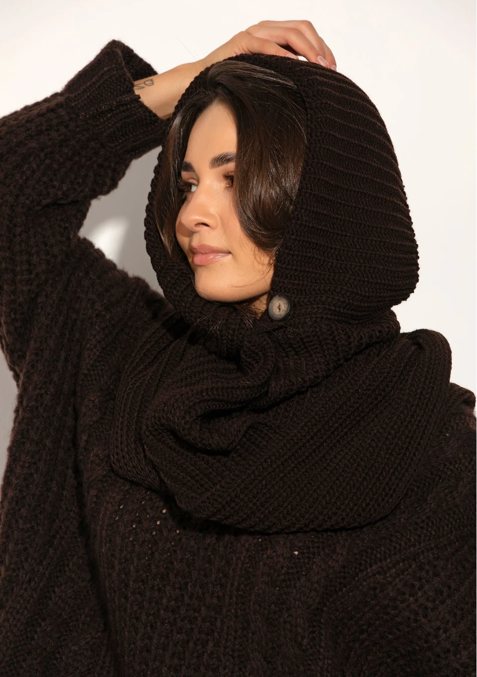 Hood Wrap - Dzianinowy kaptur z otulającym szalem Brązowy