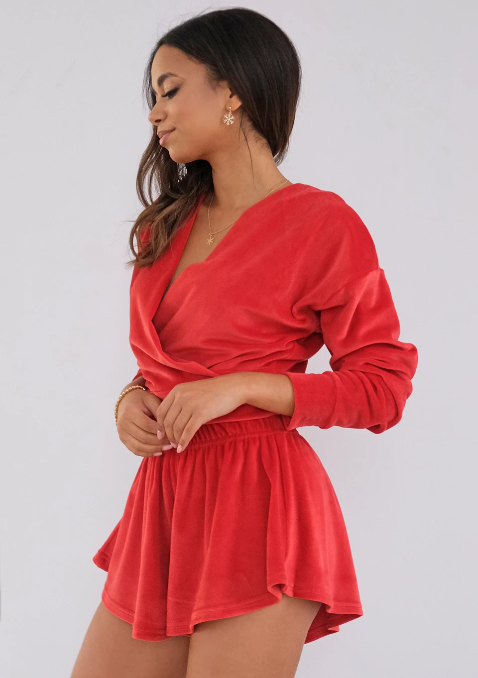Zmysłowa piżamka która zniewala intensywną czerwienią i bardzo kobiecym krojem. Wykonana z aksamitnie lśniącego materiału, delikatna, gustowna i bardzo wygodna.