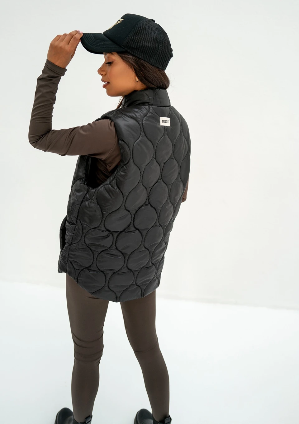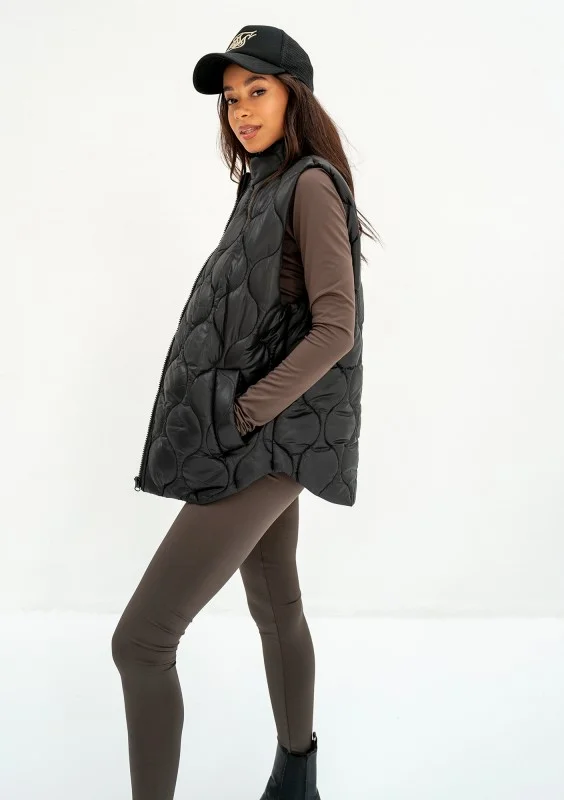 Czarny bezrękawnik damski świetnie uzupełni Twoje jesienne i wczesnowiosenne stylizacje. Wyposaż swoją szafę o ten praktyczny dodatek i noś go do wygodnych kompletów dresowych. Czarny model miksuj dowolnie z każdym innym kolorem. Będzie Ci w nim przyjemnie ciepło i lekko podczas spacerów i codziennych sprawunków. Cider to prosty i ponadczasowy fason, zdobiony pikowanym wzorem. Będziesz do niego wracać w każdym kolejnym sezonie.