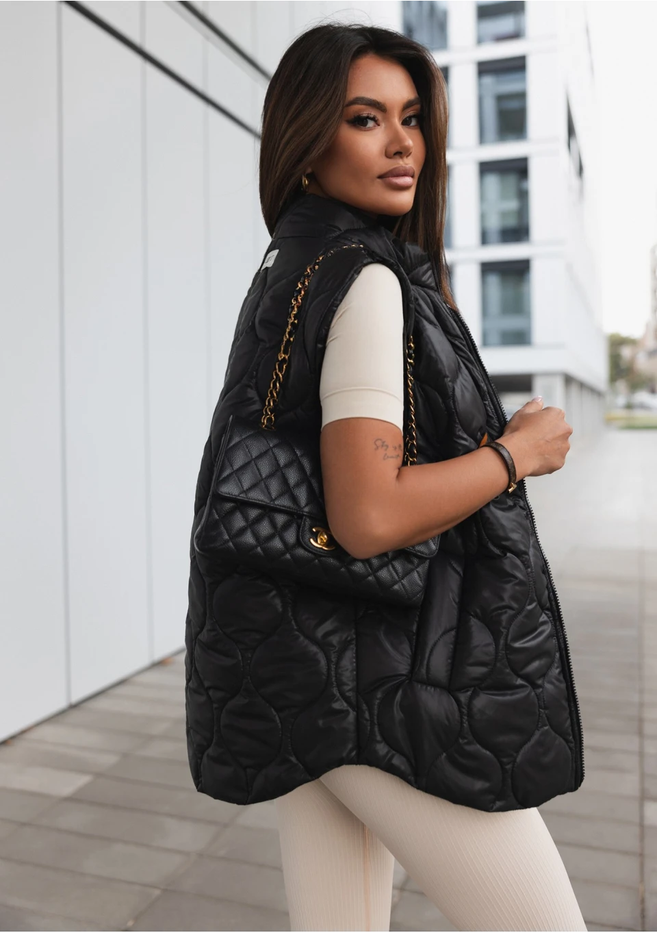 Ciepły i wygodnie lekki bezrękawnik damski ze stójką w uniwersalnym, czarnym kolorze. Żaden inny fason nie sprawdzi się tak dobrze podczas jesiennych spacerów!