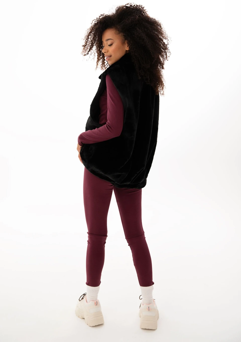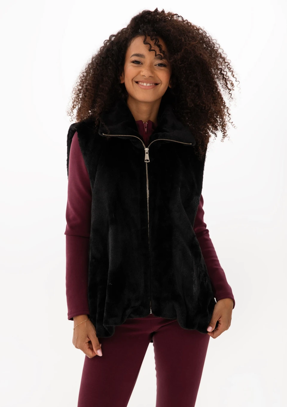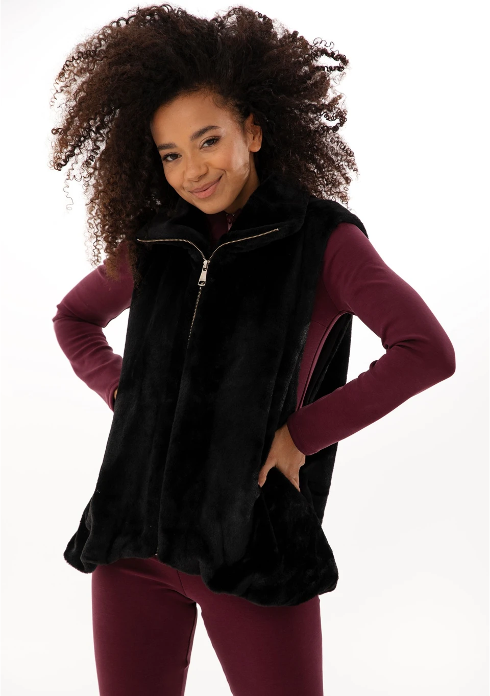 Czarny bezrękawnik z futerka ekologicznego – ciepły i stylowy dodatek. Fason oversize.