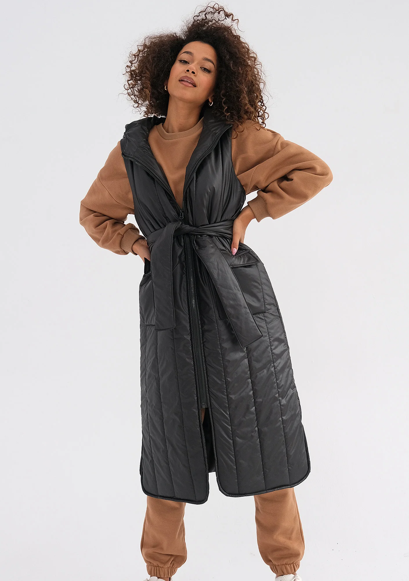 Czarne bezrękawniki damskie to klasyka, którą co roku można zobaczyć w naszych kolekcjach. W tym sezonie propozycją na chłodne dni jest funkcjonalnie zaprojektowany model o kroju midi, który zakryje całą sylwetkę przed zimnym wiatrem. Długa forma nawiązuje mocno do modnych fasonów oversize. Stylizacja w tym stylu idealnie współgra z tegorocznymi trendami.