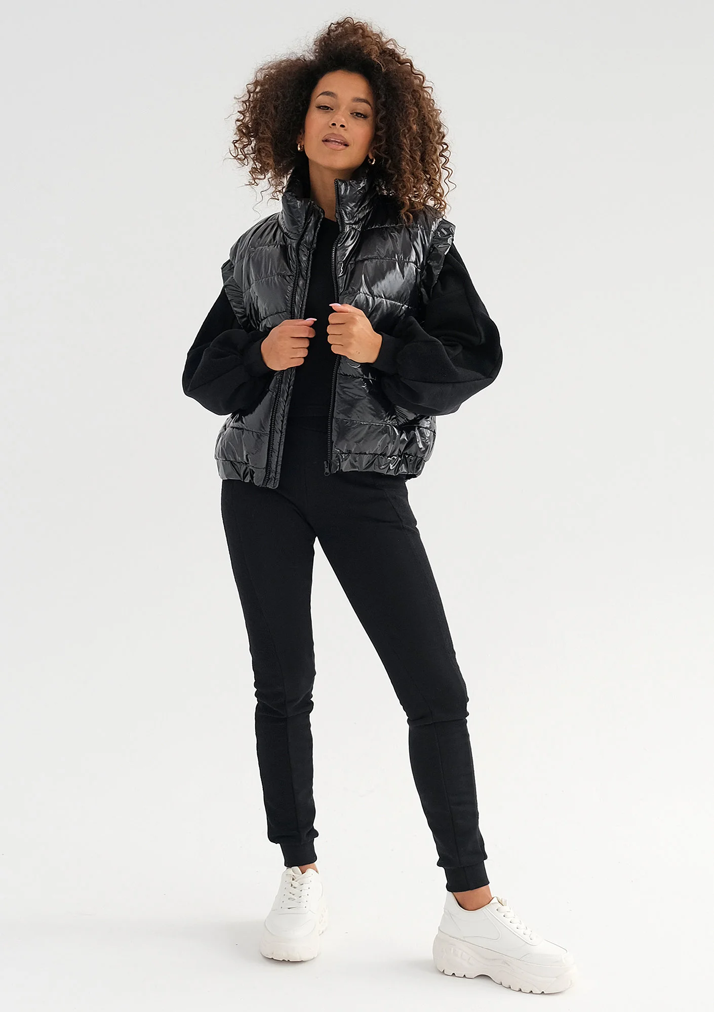 Zgłoś nielegalną treśćBłyszczący bezrękawnik damski zada szyku jako element jesienno - wiosennych stylizacji. Sportowy fason dodatkowo ogrzeje, idealnie komponując się z codziennym ubiorem, na przykład modnymi kompletami dresowymi. Taki look w sam raz sprawdzi się przy prostych okazjach, podczas osiedlowej rundki z psem, na zakupach, czy luźnych wyjściach na spotkanie z koleżanką.