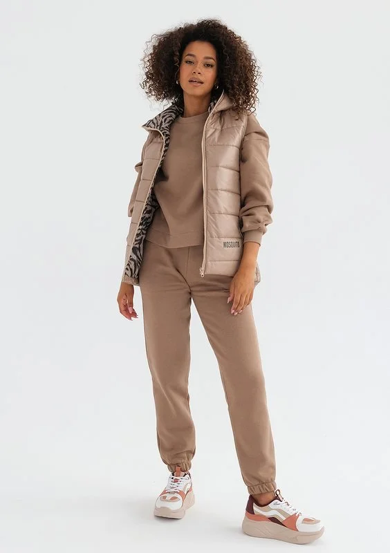 Vicky - Pikowany bezrękawnik z zeberką Beżowy