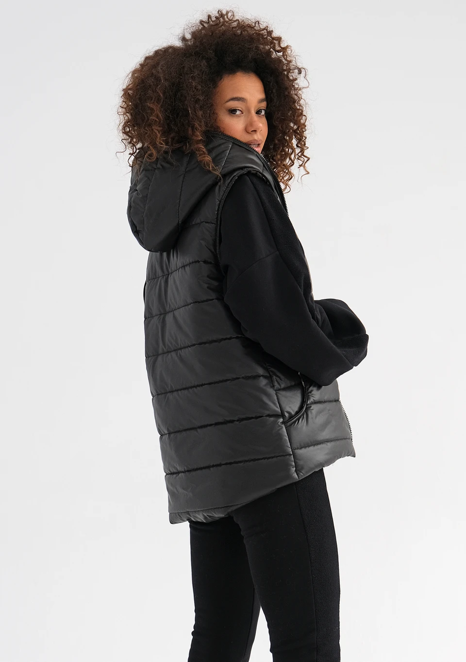 Vicky - Pikowany bezrękawnik z zeberką Czarny
