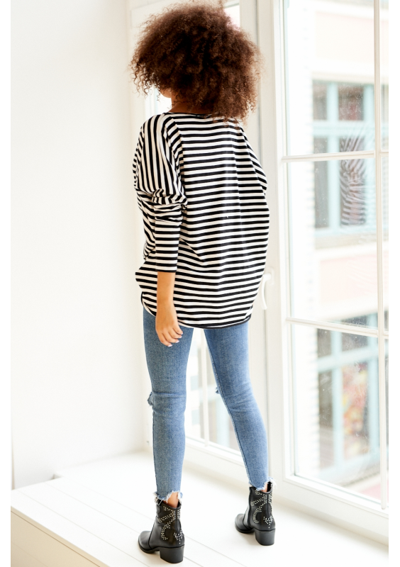 Jacque - Koszula crop z bawełny w prążki Navy