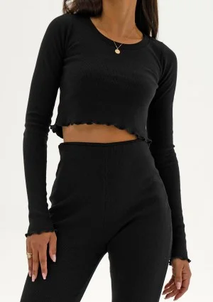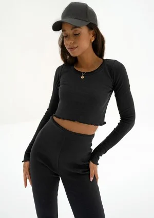Nalu - Bluzka crop z prążkowanej dzianiny Czarna