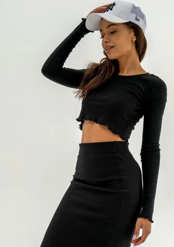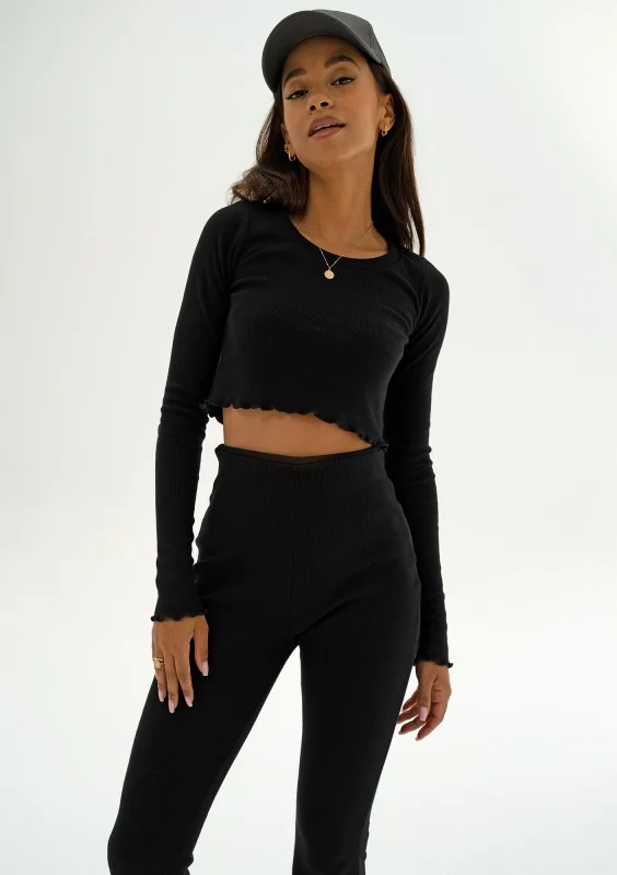 Czarna bluzka damska o krótkim kroju typu crop. Idealna baza prostych stylizacji. Wykonana z prążkowanego, bawełnianego materiału.