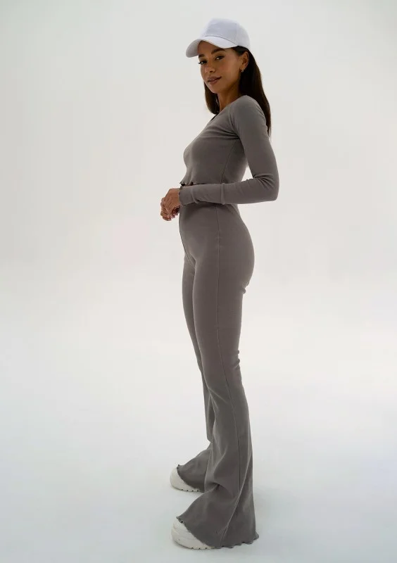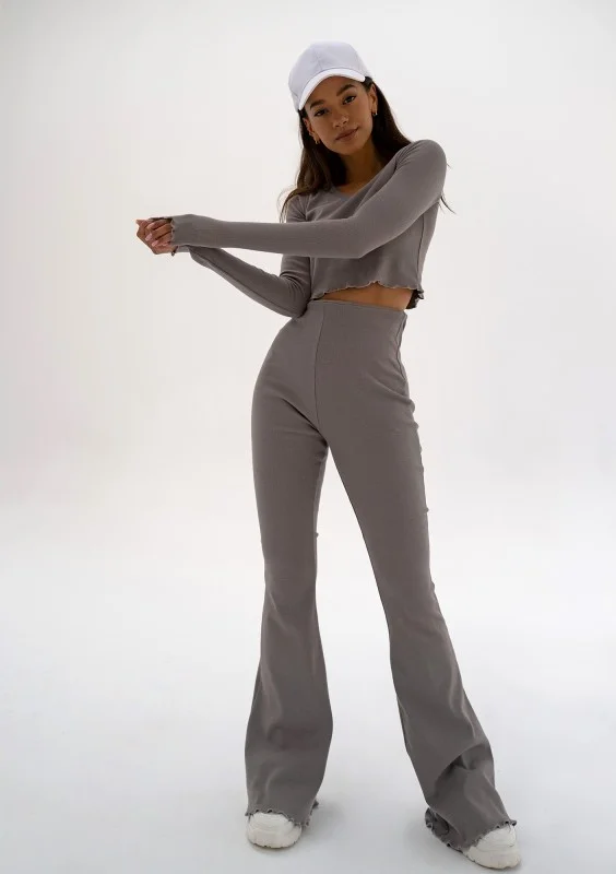 Nalu - Spodnie z prążkowanej dzianiny Taupe
