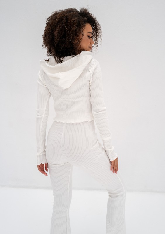 Clove - Bluzka crop z prążkowanej dzianiny z kapturem Ecru