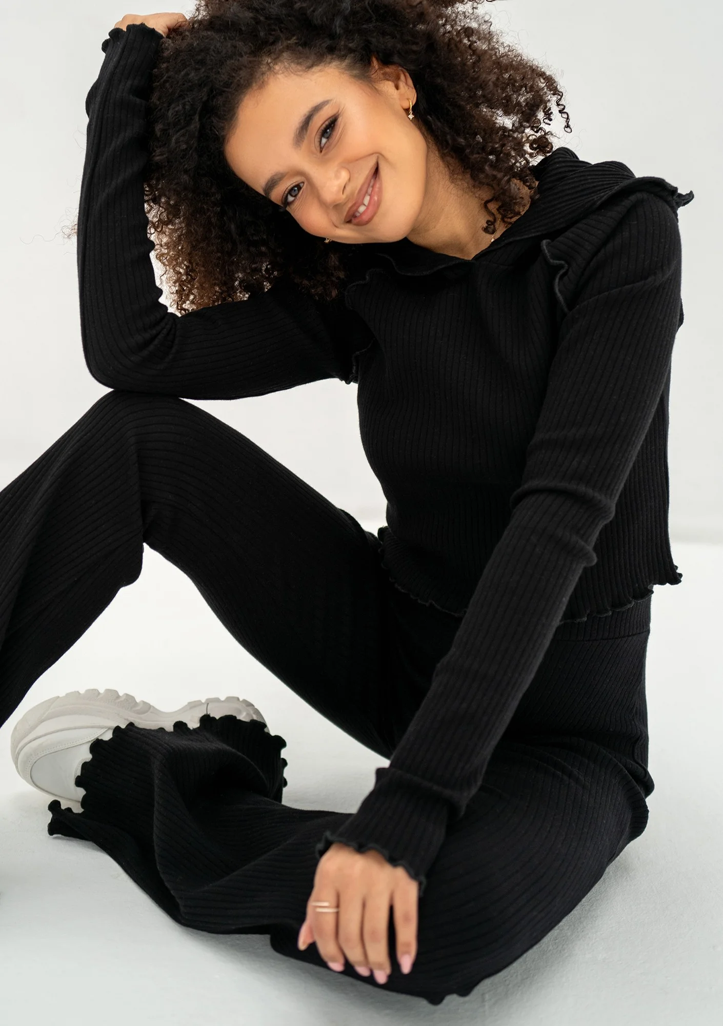 Clove - Bluzka crop z prążkowanej dzianiny z kapturem Czarna