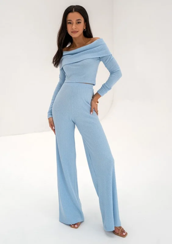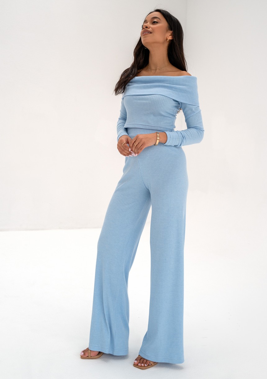 Silky - Bluzka z prążkowanej dzianiny Błękitna