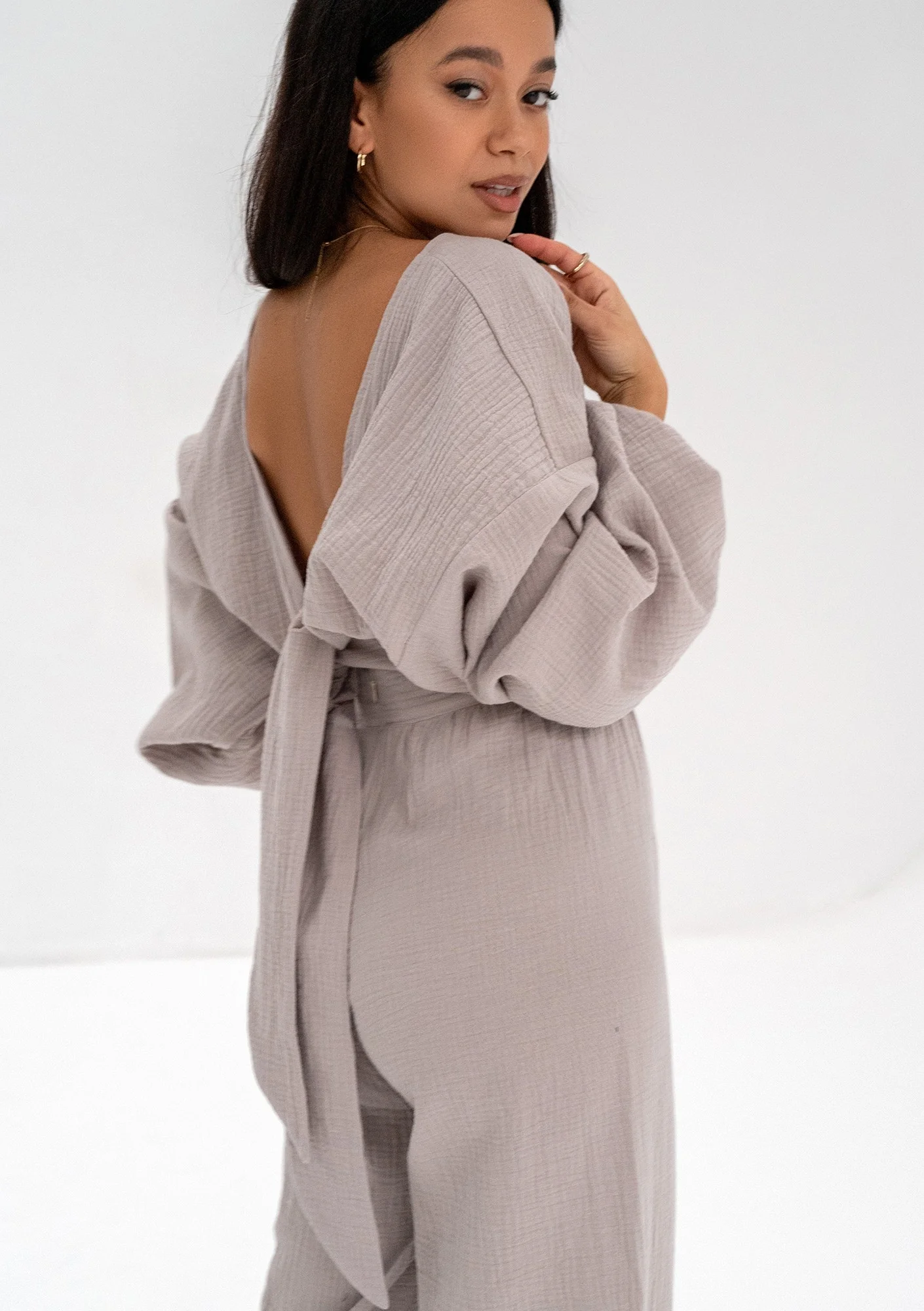 Alines - Muślinowy top wiązany z tyłu Taupe