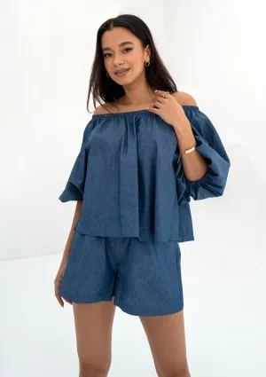 Ten modny, oversizowy top damski na lato wykonany jest ze zwiewnej tkaniny bawełnianej w kolorze ciemnego jeansu. Jest niezastąpiony w parne dni, zapewniając komfort i lekkość noszenia. Pasuje na wiele różnych okazji, od codziennych spacerów po plaży, przez spotkania ze znajomymi, aż po letnie wyjścia wieczorowe. Dzięki swojemu luźnemu krojowi i przewiewnej tkaninie stanowi idealne rozwiązanie na gorące dni, dodając stylu i wygody letniej garderobie.