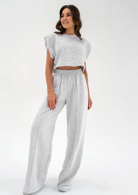 Dzięki poduszkom top dresowy Sumi nie jest zwyczajnym, rutynowym wyborem, lecz wyjątkowym i zwracającym uwagę na swój design elementem do sportowych stylizacji. W cieplejszym sezonie letnim stanowi namiastkę wygodnych dresów! Połącz go w piękny komplet damski z modnymi spodniami Costa w tym samym odcieniu jasnej, melanżowej szarości.