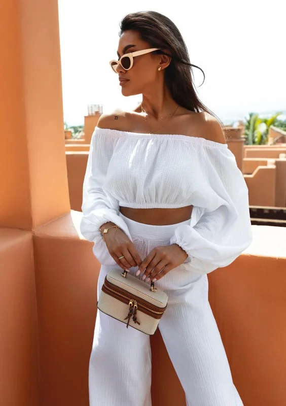 Bari - Bluzka hiszpanka z muślinu Biała