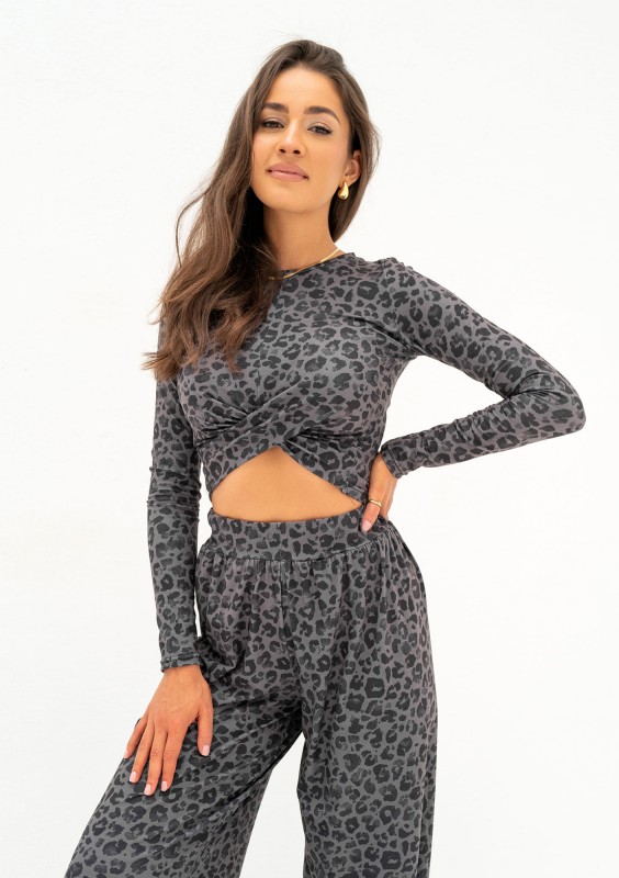 Goty - Skrzyżowany top damski Grey Leopard
