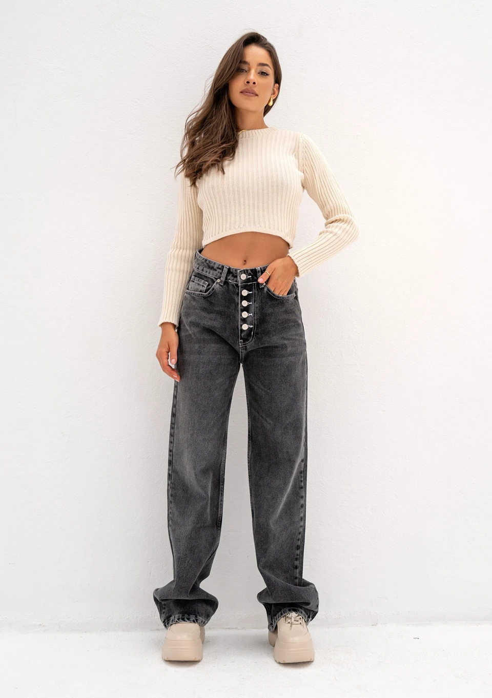 Kolee - Top z prążkowanej dzianiny Grey Melange