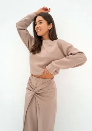 Ta modna bluza damska z wiskozą to prawdziwa perełka! Ma unikatowy design z odważnie odkrytymi plecami, co nadaje jej zmysłowy i oryginalny charakter. Mimo tego śmiałego wycięcia, bluza jest niezwykle miękka i komfortowa w noszeniu, dzięki zastosowaniu przyjemnej w dotyku wiskozy. Prezentowany model został wykonany w uniwersalnym odcieniu latte. To beżowy kolor, który pasuje niemalże do każdej stylizacji!