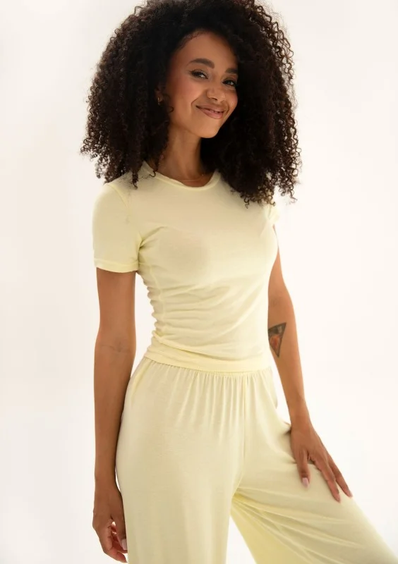 Wiskozowa koszulka o dopasowanym kroju, wykonana w jasnożółtym kolorze. Zbudujesz na tej bazie różnorodne, letnie stylizacje.