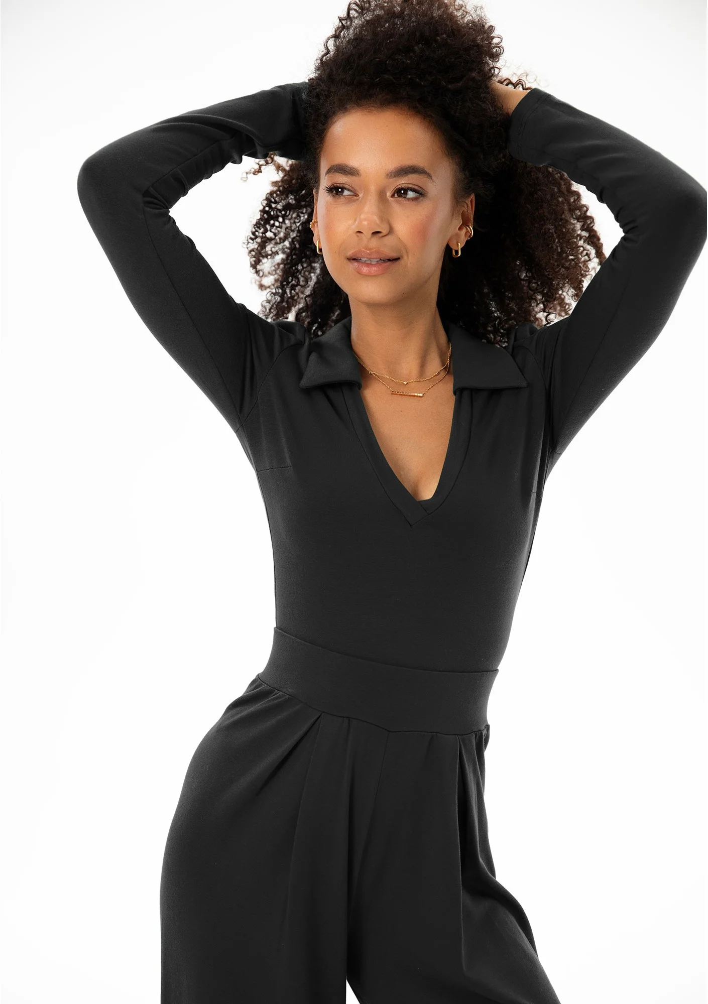 Loren - Top z kołnierzem i dekoltem ,,V'' Czarny