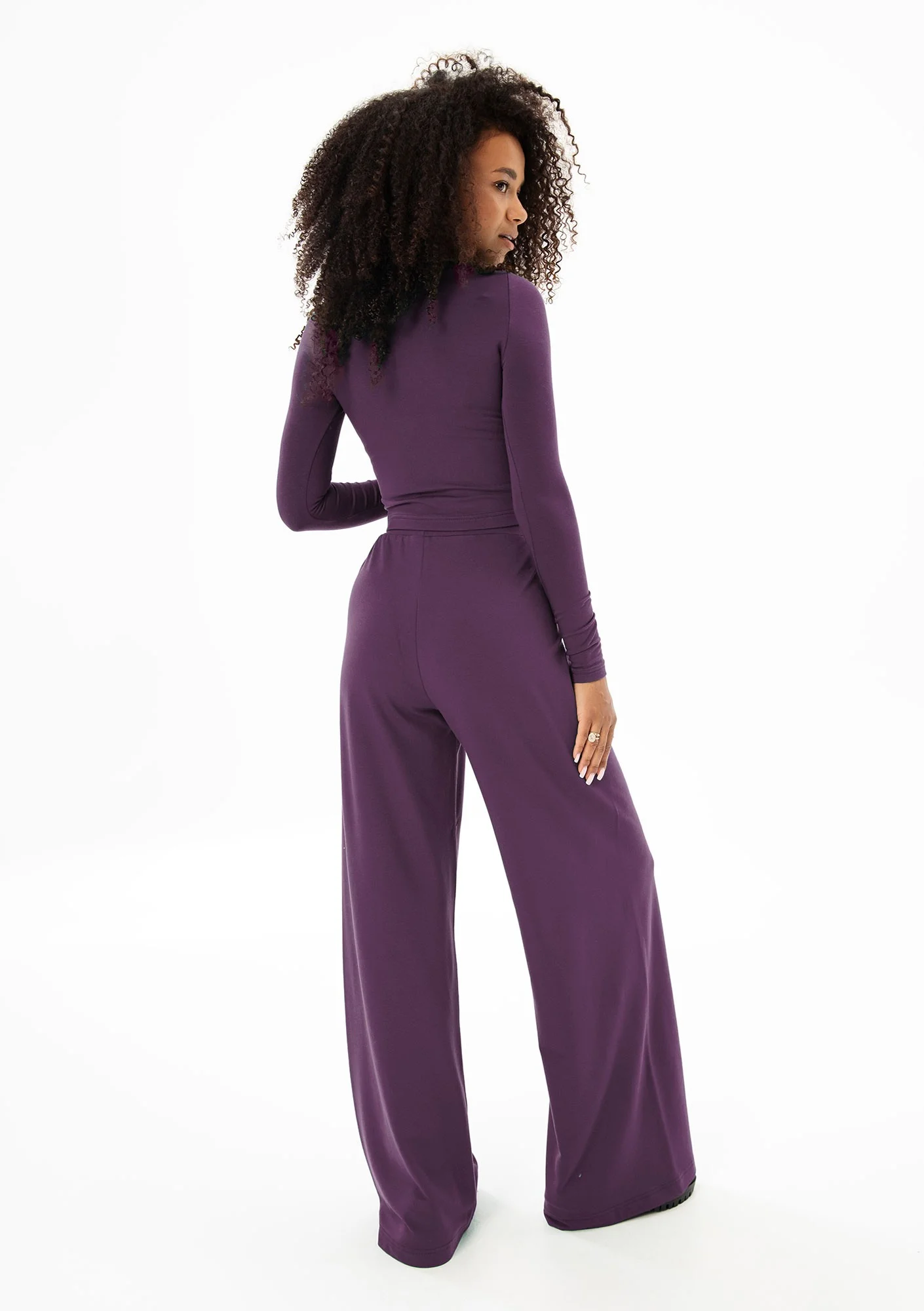 Jego największym atutem jest nietuzinkowy fason: asymetryczne wiązanie na dekolcie subtelnie odsłania fragment ciała, dodając stylizacji odrobinę zmysłowości. Długie rękawy i gładka struktura materiału podkreślają minimalistyczny charakter, a elastyczność tkaniny sprawia, że top doskonale podkreśla sylwetkę, eksponując jej atuty. Kolor tu również zawalczy o uwagę i wyjątkowość wizerunku: śliwkowe bordo stanowi udany przepis na wyróżniającą się, niepopularną stylizację.