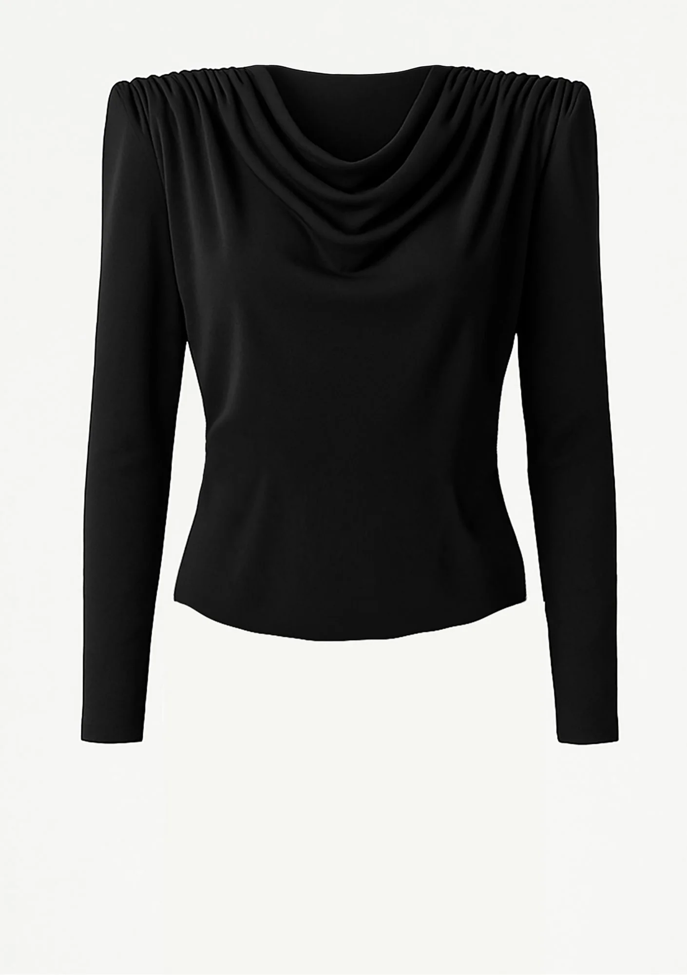 Drape - Top z dekoltem woda i poduszkami na ramionach Czarny