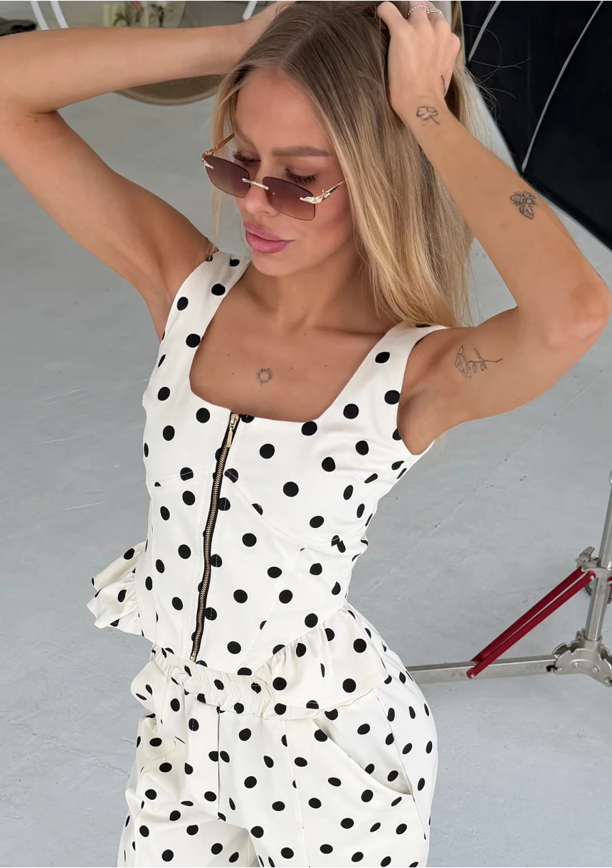 Dotti - Dopasowany top na ramiączkach w grochy Ecru