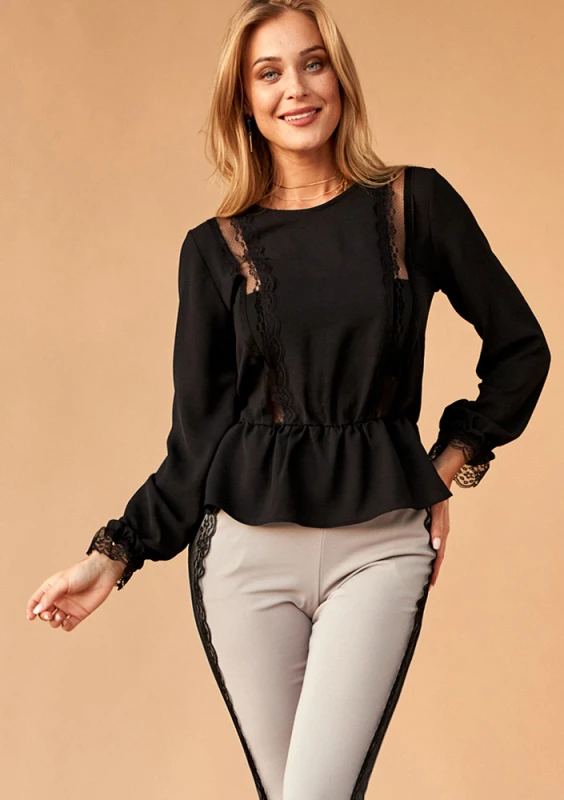 Melgo - Bluza dzianinowa z krótkim rękawem Czarna