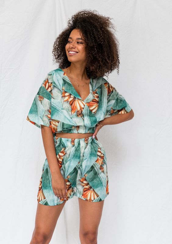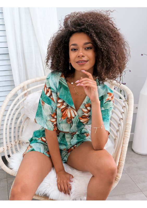 Loren - Top z kołnierzem i dekoltem ,,V'' Zielony