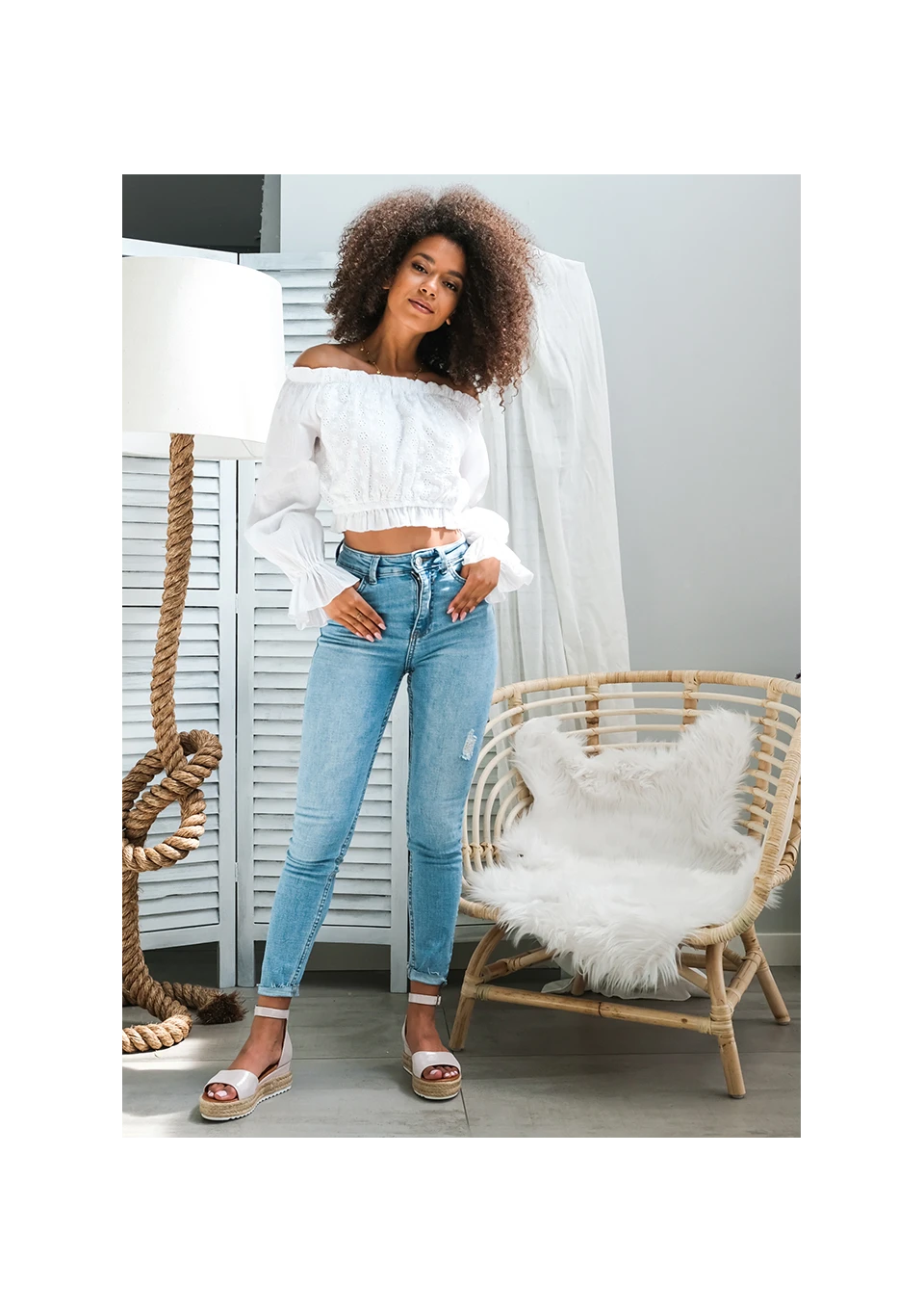 Palma - Letnia koszula z muślinu Biała