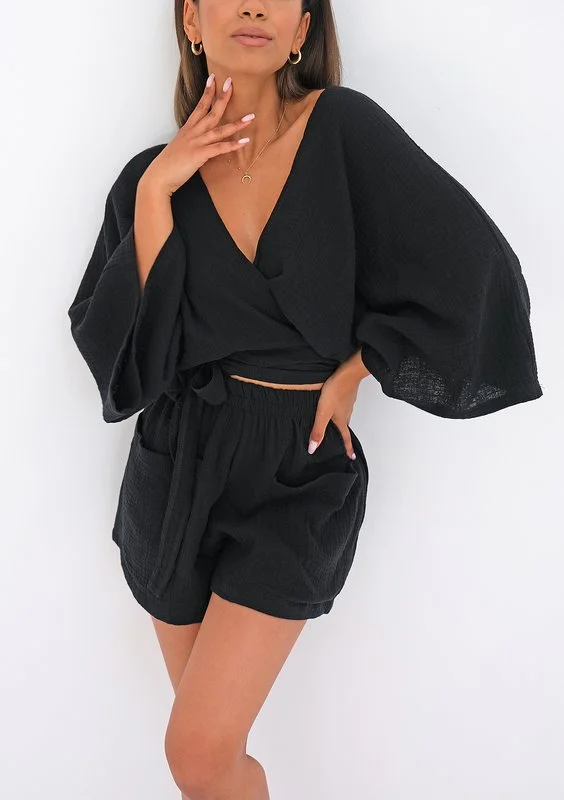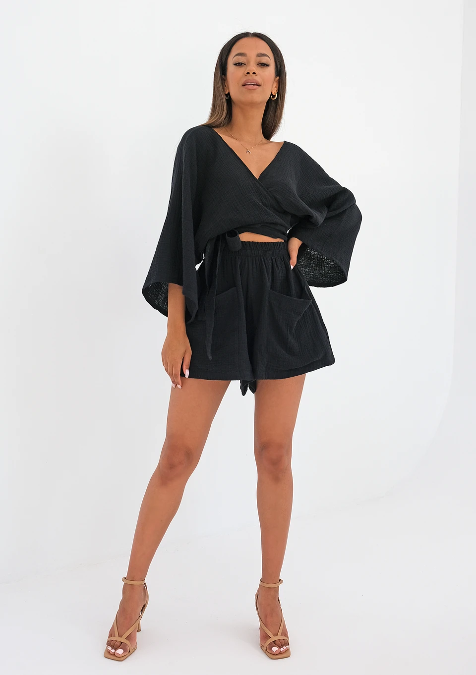 Blanche - Kopertowa sukienka midi z muślinu Czarna