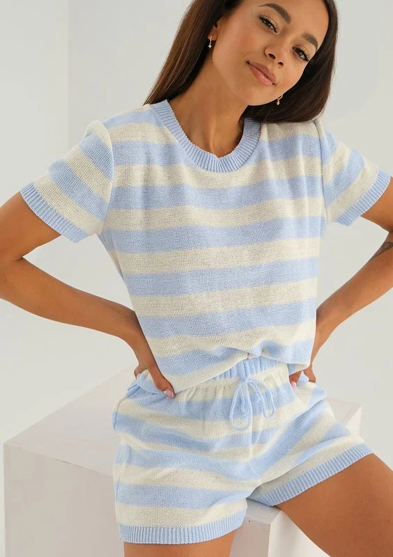 Kiko - Dzianinowa koszulka w paski Błękitna