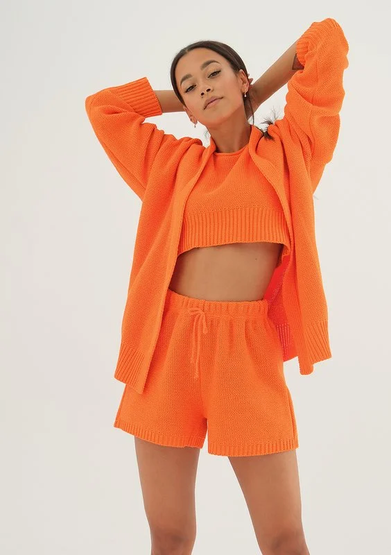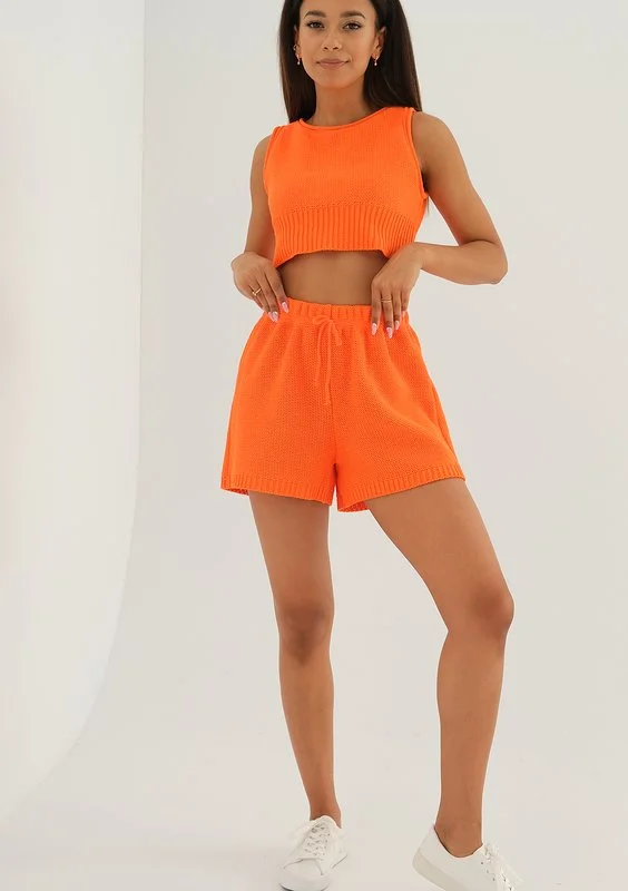 Yrsa - Krótki top dzianinowy Pomarańczowy