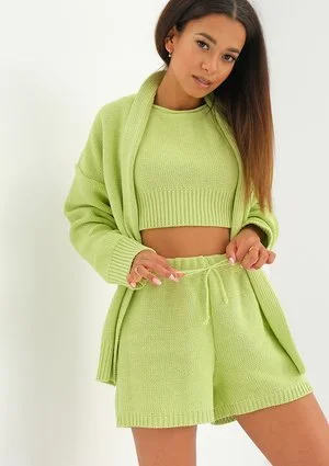 Krótki, limonkowy to fason dla tych, którzy cenią sobie subtelny, kobiecy look i poszukują czegoś na upalną pogodę. Tak drobny krój, eksponujący ramiona i brzuch przyniesie jeszcze większą ulgę w skwarne dni, niż klasyczne koszulki. Wykonany w wyrazistym i promiennym odcieniu limonki odmieni całość outfitu i doda każdej stylizacji świeżości.