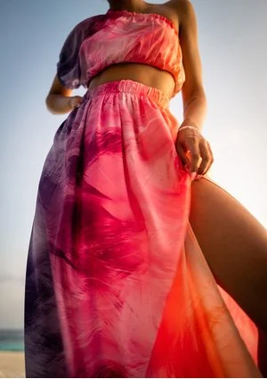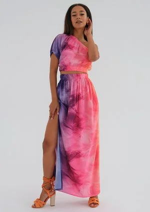 Zgłoś nielegalną treśćTop damski zdobi zjawiskowy wzór ombre – to romantyczny miraż różu, fioletu i oranżu, zupełnie przypominający kolory zachodu słońca. Stylizacja mocno wpisuje się w wakacyjny klimat. W połączeniu ze spódnicą stworzy obłędny komplet na lato, który będzie genialną alternatywą dla sukienek maxi i kombinezonów. Każdy element daje Ci jednak możliwość innych połączeń. Prezentowany top będzie równie dobrze pasował do szortów i dżinsów, zwłaszcza gładkich pod względem koloru.