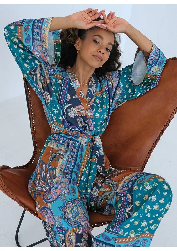 Kimono o wielokolorowym wzorze z motywami paisley sprawi, że zabłyśniesz oryginalnym designem. To propozycja stylizacji na letnie przyjęcia, spacery po resorcie i popołudniowe wypady na miasto. Ciekawy i elegancki look sprawdzi się także w pracy.