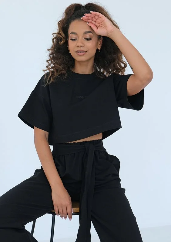 Thera - Koszula crop z muślinu Czarna