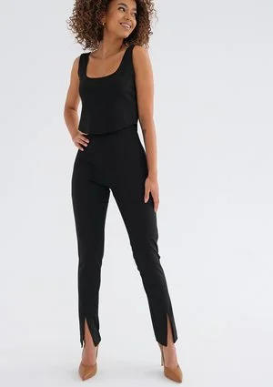 Czarny top bez rękawów będzie pasował zarówno do eleganckich zestawień, jak i do jeansów. To idealny wybór do pracy, na formalne spotkanie czy uroczystość. Model o krótkim kroju, będzie bardzo dobrze komponował się ze spodniami lub spódnicą o wysokim stanie. Szerokie ramiączka ukryją elementy bielizny damskiej, dzięki czemu będziemy wyglądać nienagannie. Top został uszyty w Polskiej szwalni, z miękkiego materiału z domieszką elastanu, co sprawia że jest to bez wątpienia najwygodniejsza forma do wytwornych połączeń. Topy damskie Zaya występują w czterech różnych kolorach.