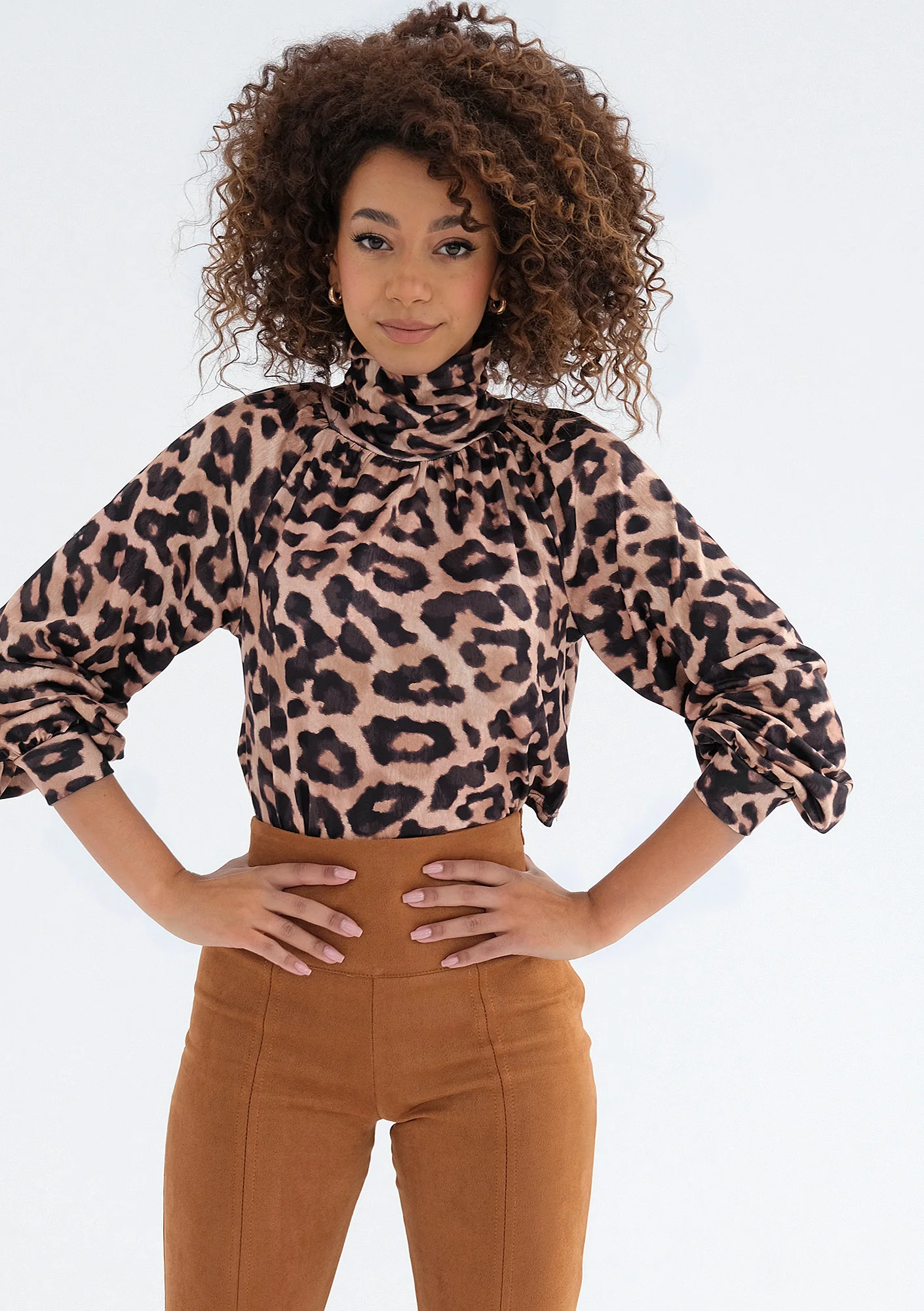 Zafunduj sobie stylowy look zamawiając dostępną w naszym sklepie internetowym elegancką bluzkę z golfem, zdobioną charakternym wzorem panterki. Produkt został uszyty z komfortowej tkaniny, która nie gniecie się, zapewnia nienaganny wygląd i prawidłową cyrkulację powietrza. Bluzka z golfem prezentuje się bardzo szykownie, ale i subtelnie – wykorzystasz ją do casualowych kombinacji na codzienne spotkania i wyjścia do pracy. Dostępne rozmiary tej beżowej bluzki to XS, S, M i L.