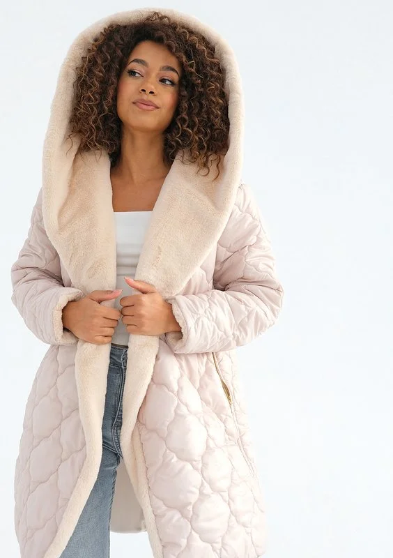 Fason luźny, krótki, z golfem, z tyłu krótki zamek.