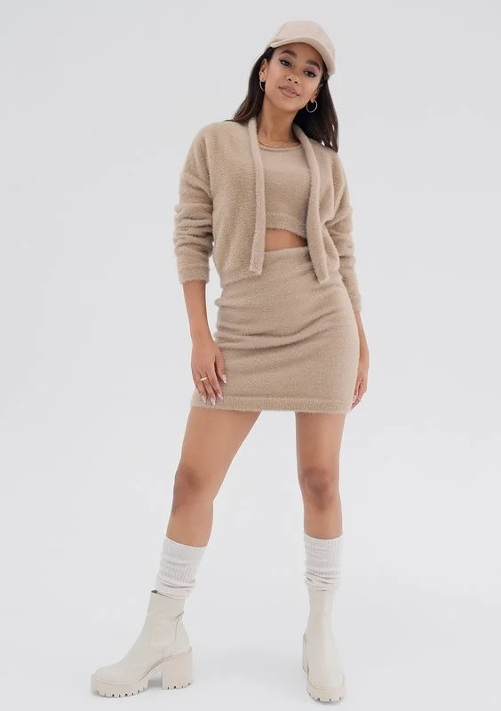 Seva - Krótki top z dzianiny Beżowy