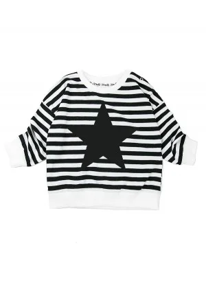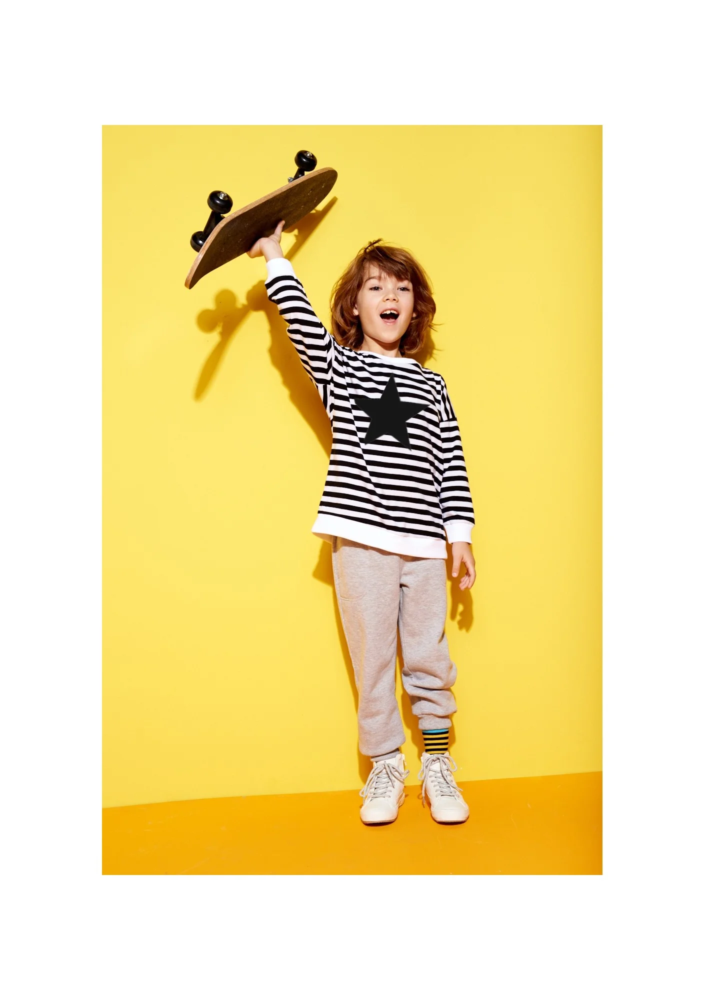 Bluza w paski nie tylko wpisuje się w marynarski styl, ale także może być doskonałym elementem wielu innych stylizacji. Dzięki prostemu wzorowi i klasycznym kolorom, łatwo dopasować ją do różnych spodni czy spódniczek, tworząc różnorodne looki dla dzieci. Dodatkowo, fakt że dla mamy dostępna jest podobna bluza w paski z gwiazdą, otwiera możliwość stworzenia zestawu "matchy matchy", co jest nie tylko modnym trendem, ale również pozwala na wyrażenie więzi rodzinnych poprzez wspólne ubrania. Dziecko i mama mogą razem stworzyć harmonijną stylizację, która będzie świadczyć o bliskości i wspólnych zainteresowaniach.