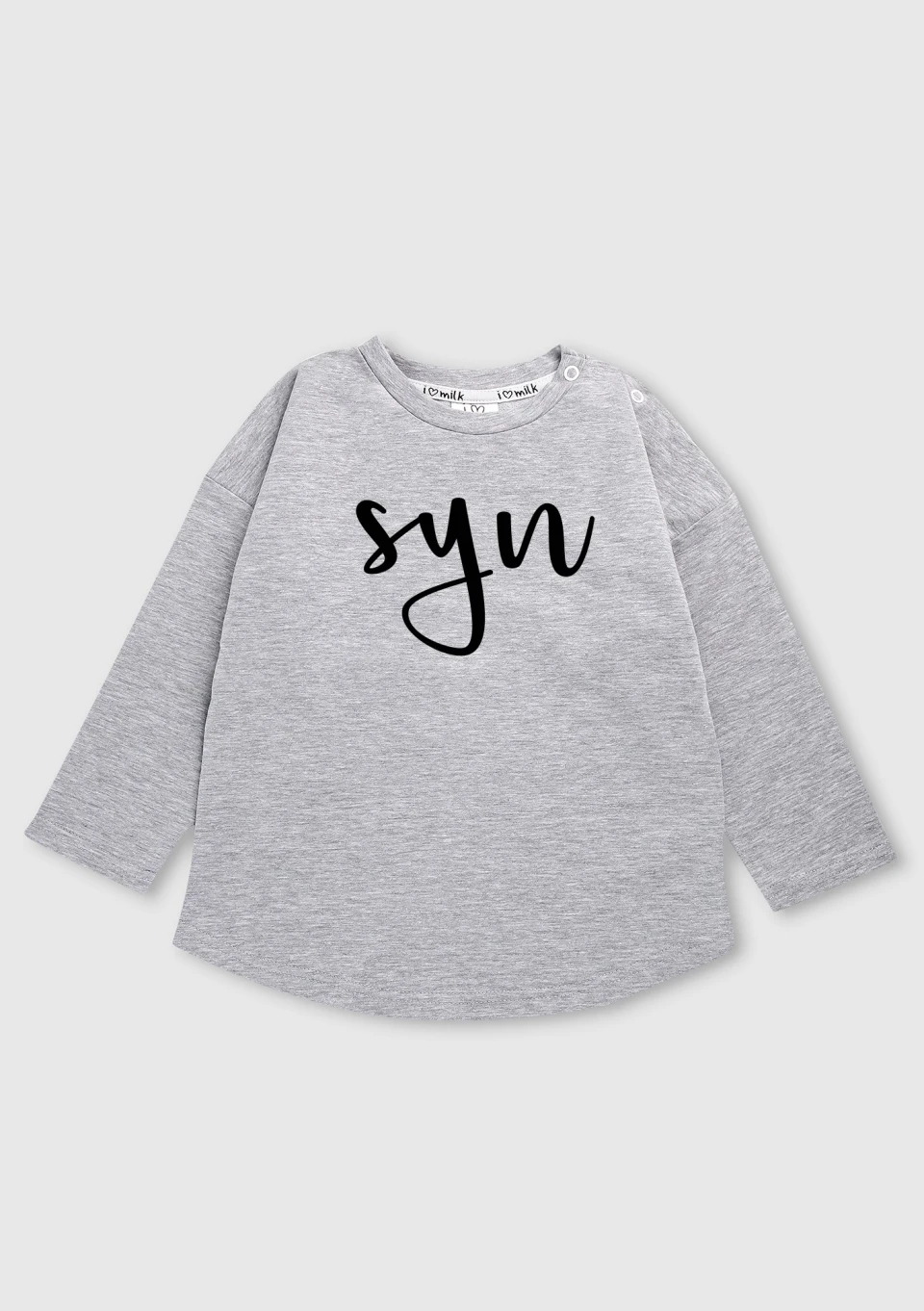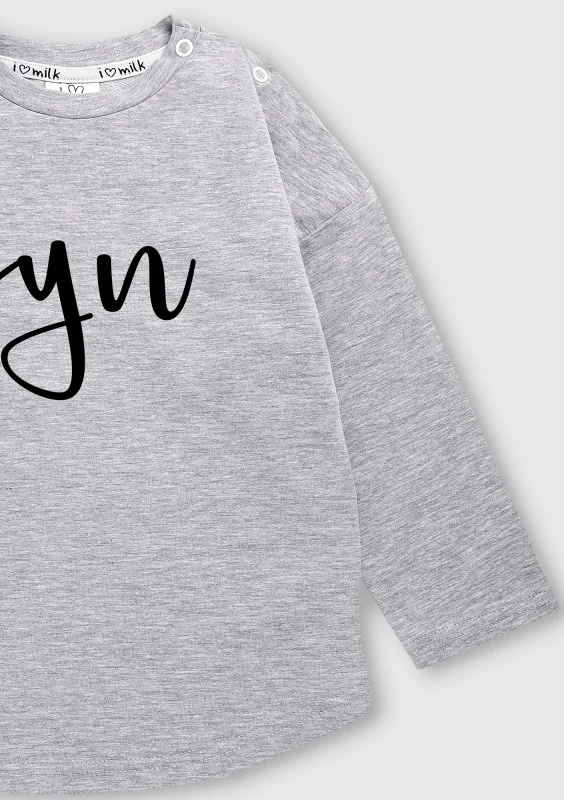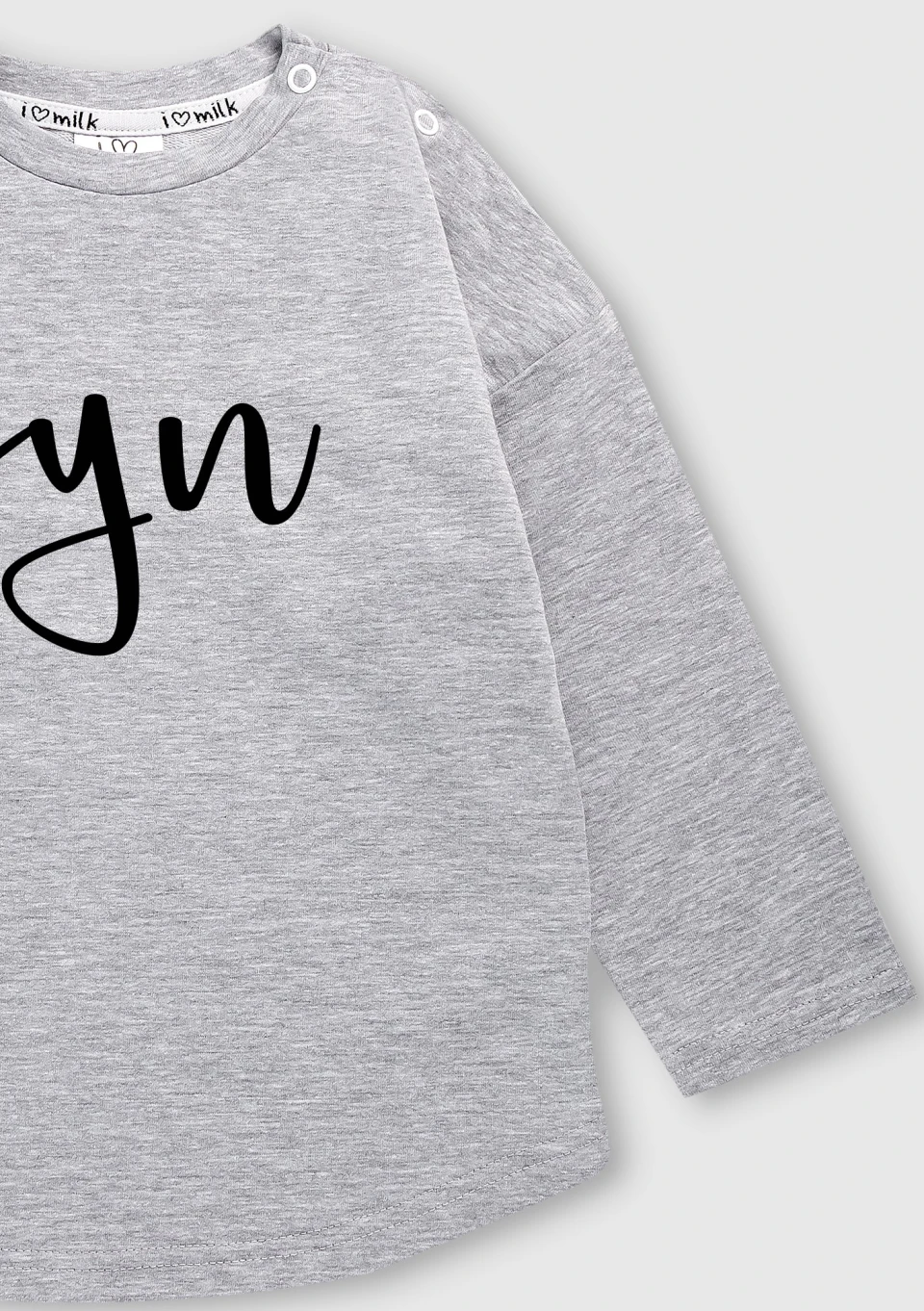 Bluza bawełniana dla chłopca na rodzinne okazje. Ubranko z zatrzaskami na ramieniu i starannie wykonanym napisem.