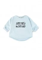 Oferowana bluza dla chłopca dostępna jest w kilku uniwersalnych kolorach oraz wielu rozmiarach do wyboru. Posiada klasyczny, luźny fason i podwijane rękawy, dlatego dziecko może czuć się w niej w pełni swobodnie. Bluza jest minimalistyczna, dzięki czemu pozwala z łatwością dopasować się do różnego typu spodni eleganckich lub sportowych. Jej jedyną ozdobą jest humorystyczny napis, który sprawia, że każdy kto spojrzy na tę stylizację z pewnością się uśmiechnie. Produkt będzie idealnym prezentem dla energetycznego chłopca od urodzenia do 8 lat.