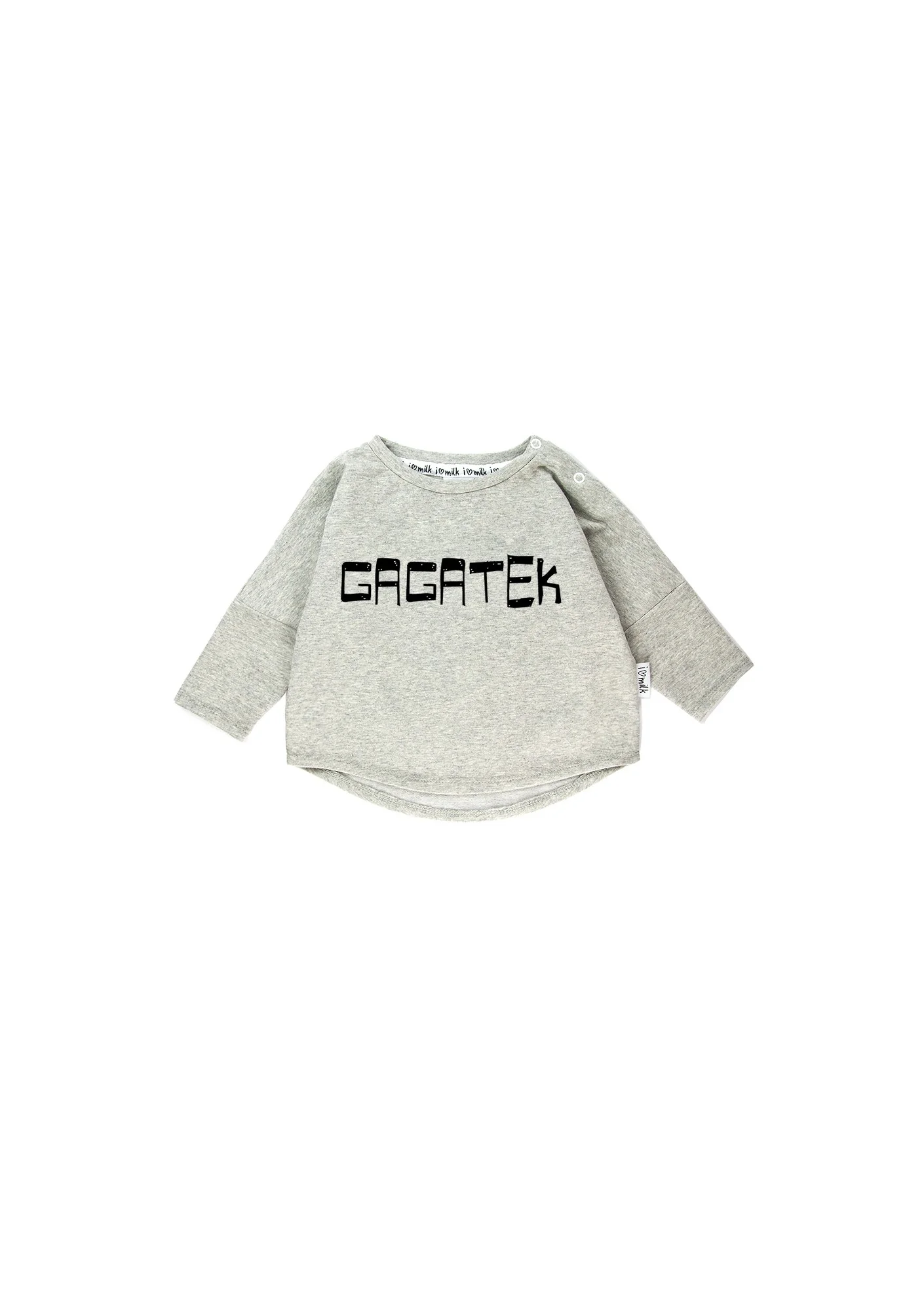Bluza powstaje w kolorze szary melanż oraz biały. Doskonale wygląda w zestawieniu z dziecięcymi jeansami, a także chłopięcymi legginsami. Może być noszona o każdej porze roku. Napis GAGATEK świetnie znosi pranie. Stabilnie przylega do tkaniny, nie odbarwia się podczas prania i odporny jest na zagniecenia. Prezentowana chłopięca bluza powstaje w rozmiarach dla niemowląt (50/56 -98/104) oraz dla starszych dzieci (110/116 – 134/140). Za jej wykonanie odpowiedzialne są krajowe szwalnie. Projekt przygotowany w Polsce. W Mosquito kupić można również romper dla chłopca z napisem GAGATEK.