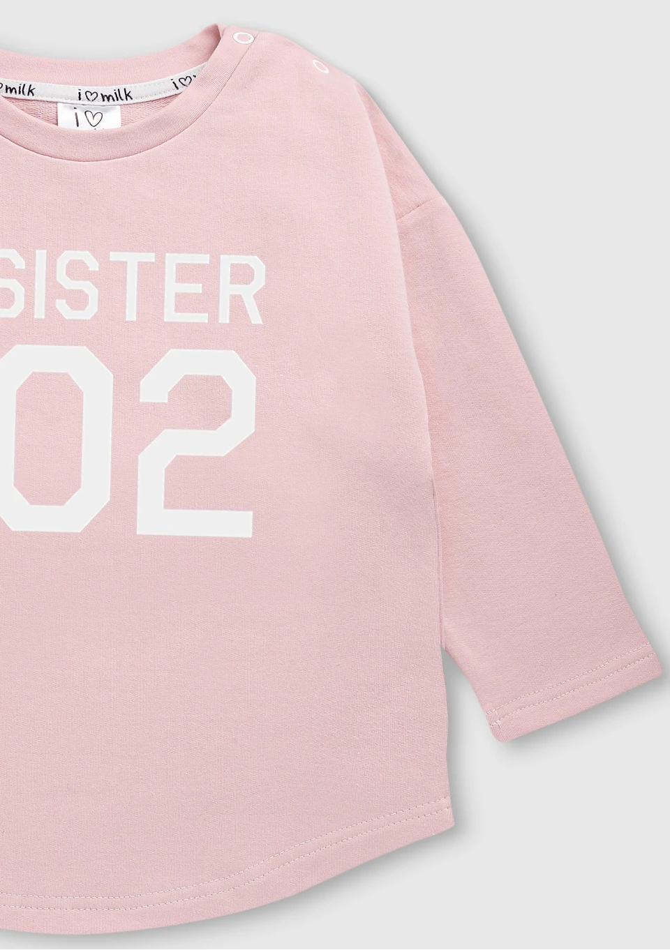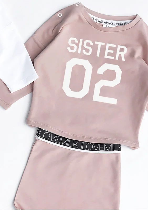 Pudrowa bluza dla siostry ze sportowym numerem. Wygodne ubranko o swobodnym kroju, uszyte z certyfikowanego materiału.