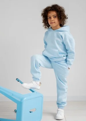Błękitną bluzę dziecięcą szyjemy w aż sześciu rozmiarach, odpowiednich dla dzieci o wzroście od 74 do 140 cm. Tabela pod zdjęciami z dokładnymi wymiarami pomoże Ci wybrać odpowiedni model. Fason bluzy jest dość luźny, typowo sportowy. Ubranie posiada wygodny kaptur, by osłonić uszy przed wiatrem, a także praktyczną kieszonkę na brzuchu. Nie mogło zabraknąć stylowego logotypu naszej marki – biały napis subtelnie zdobi przód ubrania. Do kompletu wygodnej, błękitnej kangurki polecamy dresowe spodenki dziecięce w tym samym odcieniu.