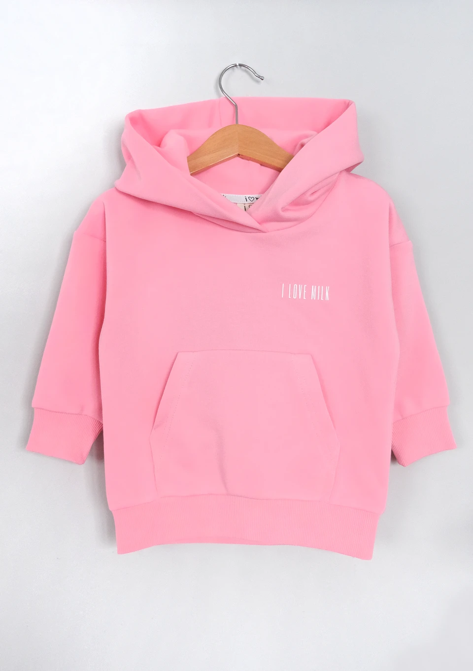 Różowa bluza dziecięca z wygodnym kapturem i kieszonką. Wprawi maluchy w doskonały nastrój swoim neonowym odcieniem.